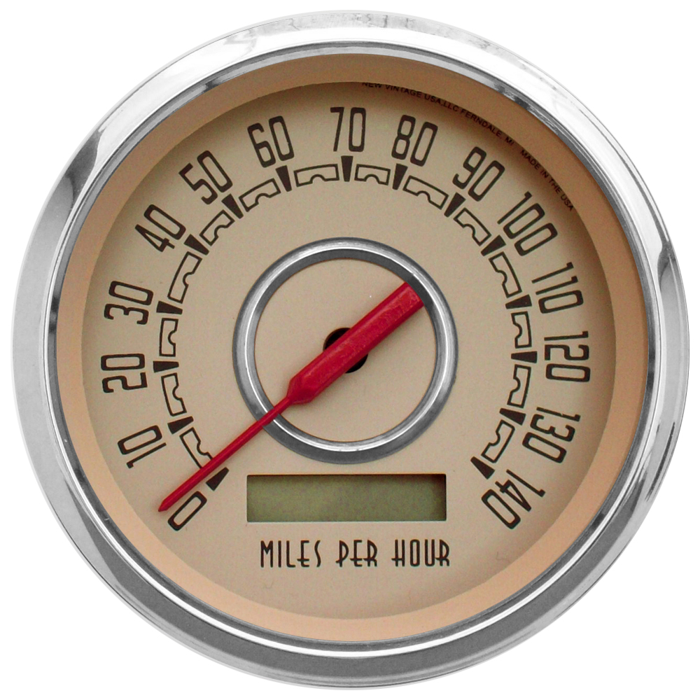 New Vintage Programmable speedometers are easy to set-up and can use inputs from virtually any speed sender, OE or aftermarket the units will even accept input from many PCMs, all of this without any converters or conversion boxes. Speedometers feature a remote mount programming button to keep the gauge face clean and real glass lenses. Programmable speedometers are easily calibrated by hitting the button, driving a mile and hitting the button again, its as straightforward as that. No confusing DIP switches. Calibration is easily accomplished any time tires or gears are changed. Our speedometers have accumulated over 5,000,000 miles of successful use reflecting their popularity and robustness