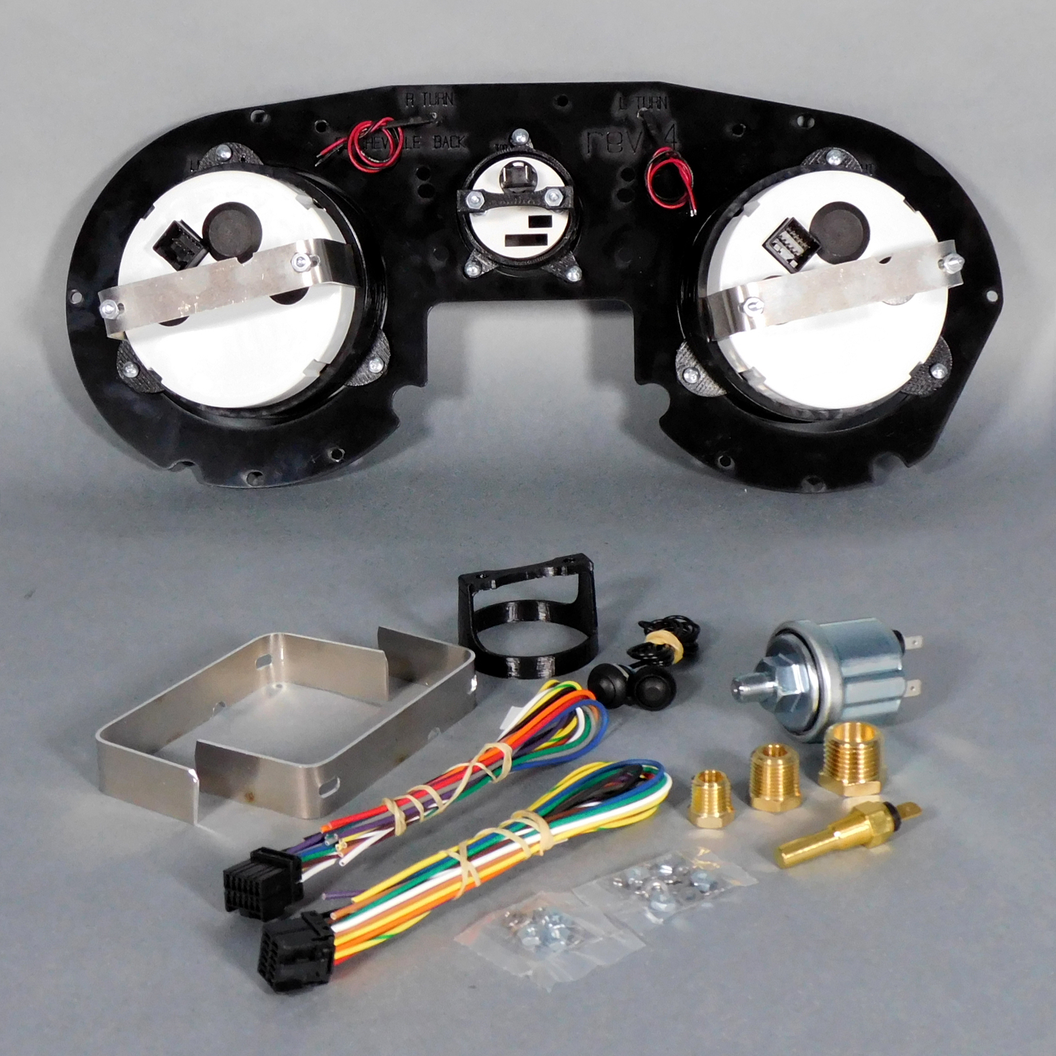 Our 3‑in‑1 gauges are loaded like a test mule getting flogged down Woodward: modern LED lighting, performance timers, shift alerts, auxiliary inputs, a settable odometer — all driven by OE‑grade and mil‑spec guts that don’t back down when the pavement gets mean.