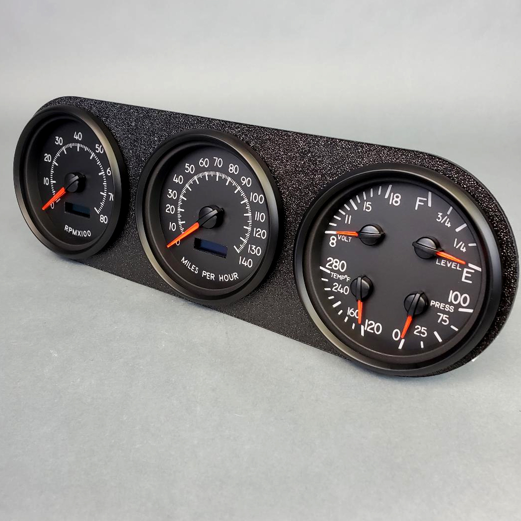 Quad gauge 4-3/8" mounting hole with Fuel (programmable inputs see manual for details) temperature, pressure and vehicle voltage