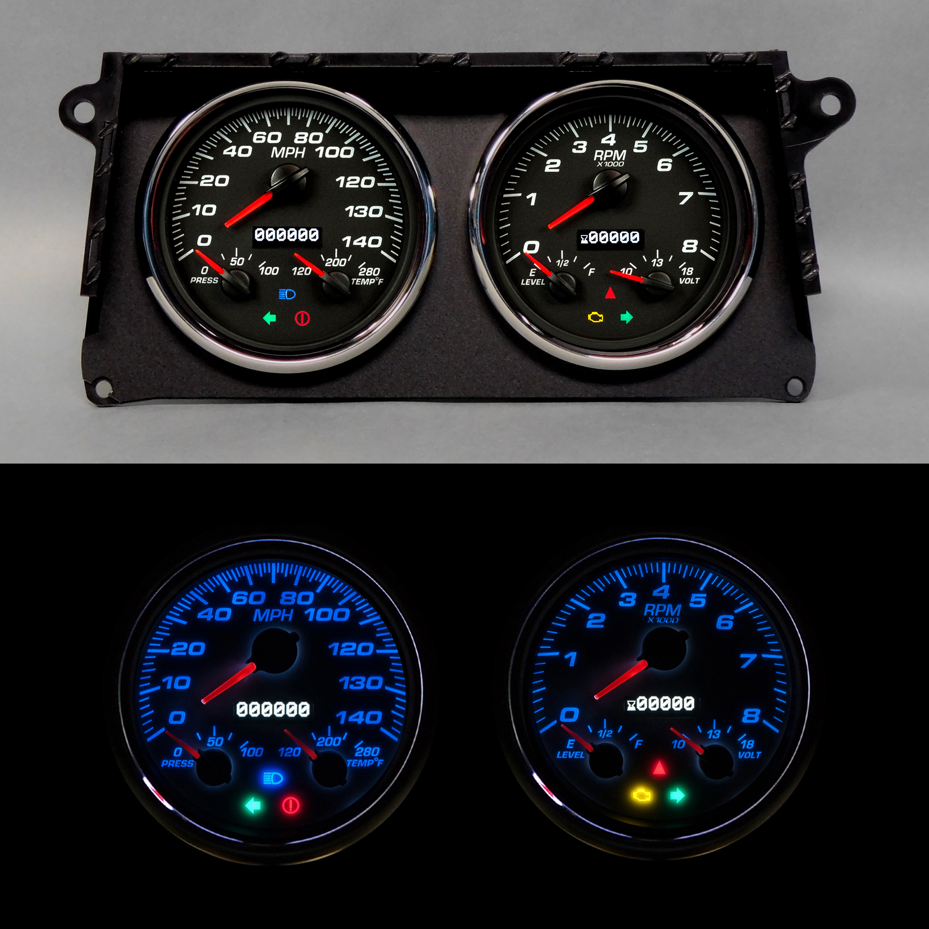 Performance II Series instruments have the combined style of European sports car and racing gauges. This performance look has a classic gauge feel without the "in-your-face" look of a racing gauge. Full sweep stepper motors for higher dial resolution and blue LED back lighting at night. Stainless or bezels and flat glass add to the high class, OE installed look. Just like always, NVU does not have any logos on the dial so the final result will be a professional, custom look.