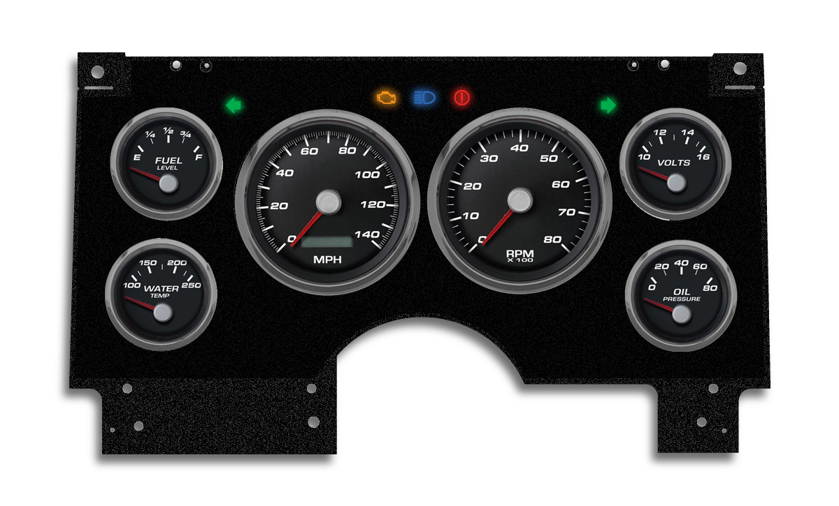 Installs in the factory location using all OE mountings. Stock cluster spacer is re-used for a factory-installed fit. NVU's exclusive dead-fronted mounting panel hides the indicators when off, then clearly lights the icons when on. Each package includes speedometer, tachometer, voltmeter, water temperature, oil pressure and a factory match 0-90 ohm fuel gauge. Kits are bolt-in and require wiring similar to any gauge kit, some splicing is required (not plug-and-play). Kits also include temperature sender, pressure sender, bushing kit and detailed instructions. May require speed sender for electronic speedometers, check your application. Need to add-on? NVU offers a full line of matching gauges in functions form Air-Fuel ratio, oil temp, trans temp and vacuum/boost.
