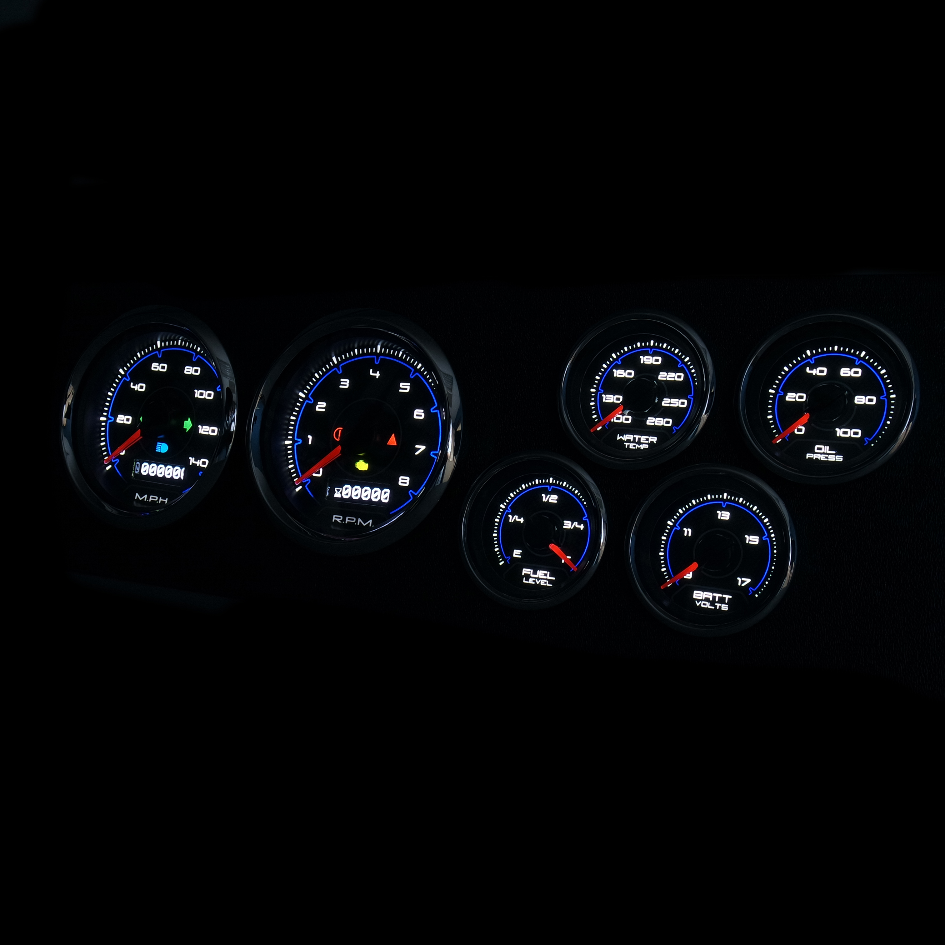 FEATURES: All NVU 6-gauge kits are powered by the legendary Phoenix Direct-Drive platform, built on 20 years of OE and aftermarket expertise. This innovative system redefines how instruments are wired and used, bringing modern features to a standalone gauge kit that you wouldn't typically expect. Enjoy high-end capabilities such as a settable odometer, built-in turn signals and indicators, performance timers, shift alerts, and up to 3 auxiliary inputs—no extra drivers, boxes, or modules required! Coupled with the exclusive Direct-Drive wiring system, installation time is reduced by up to 75% compared to traditional gauge setups, eliminating mistakes and saving you from headaches. Simply wire the speedo and tach by color, plug in the minor gauges, and you’re all set—installation has never been easier! Learn more about all of the features HERE>>>