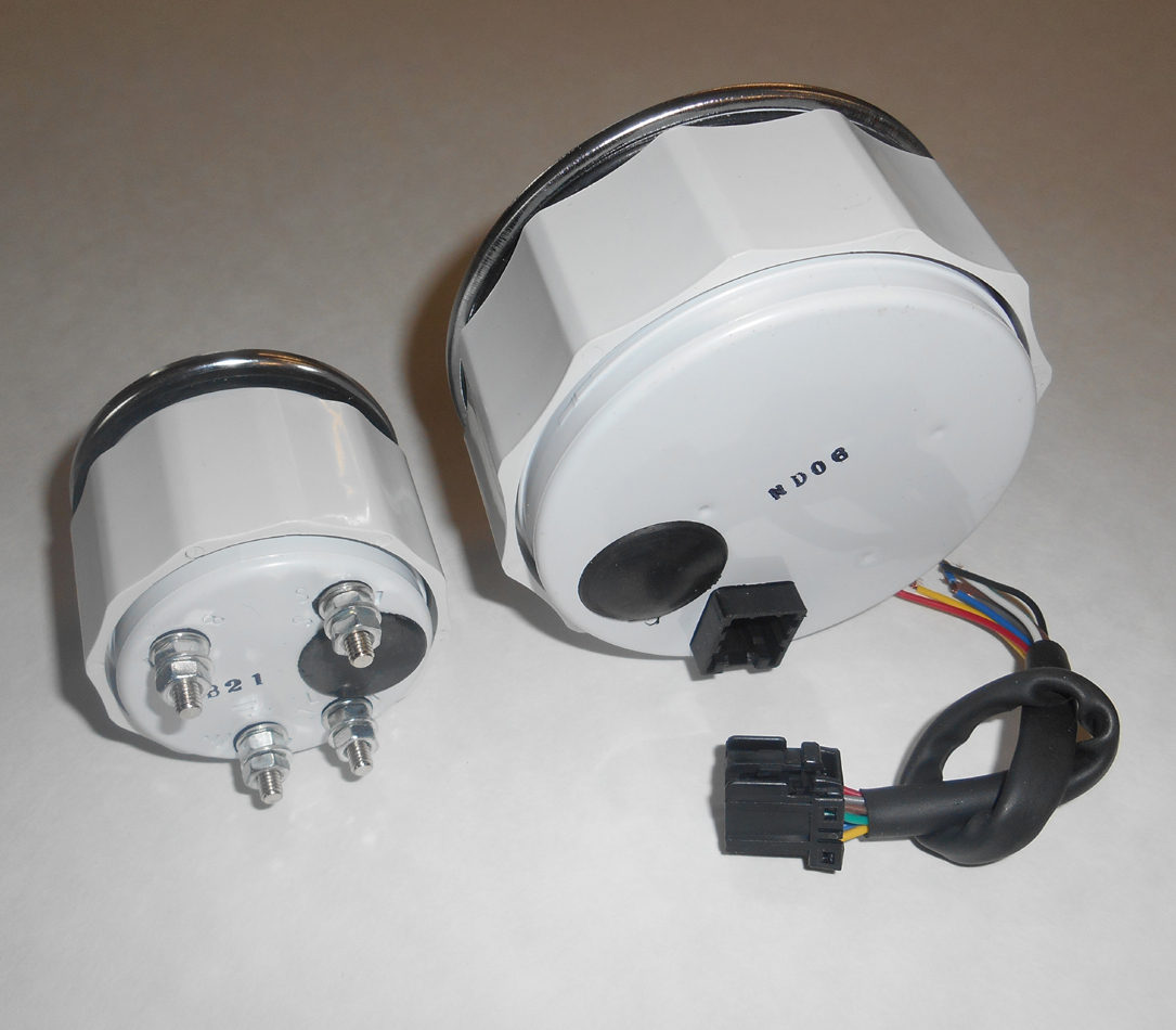 Performance II Series instruments have the combined style of European sports car and racing gauges. This performance look has a classic gauge feel without the "in-your-face" look of a racing gauge. Full sweep stepper motors for higher dial resolution and blue LED back lighting at night. bezels and flat glass add to the high class, OE installed look. Just like always, NVU does not have any logos on the dial so the final result will be a professional, custom look. NVU GENII programmable tachometers are the most flexible instruments available today. Easily programmed to any input pulse count. Can be used on any ignition system: points, electronic, PCM, CDI, MSD, alternator, crank trigger, anything that sends a signal. Simply set the pulses per revolution and the tach is set for your application. LED backlighting for easy viewing at night. User settable outputs for shift lamps and triggers are also included. Includes: 3-7/16" tachometer, spin-on back clamp, programming button, detailed instructions, wiring harness and plug. 0-8,000 RPM
