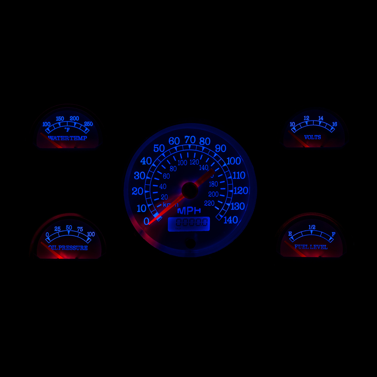 2-1/16" rugged, aircore minor gauges have the old school feel you have been looking for with retro graphics, short sweep indicators and blue LED backlighting. Fuel gauge with 0-90 ohm input operates on any GM fuel sender and with included 0-90 universal sender. All in a complete value package with a great 2-year warranty.